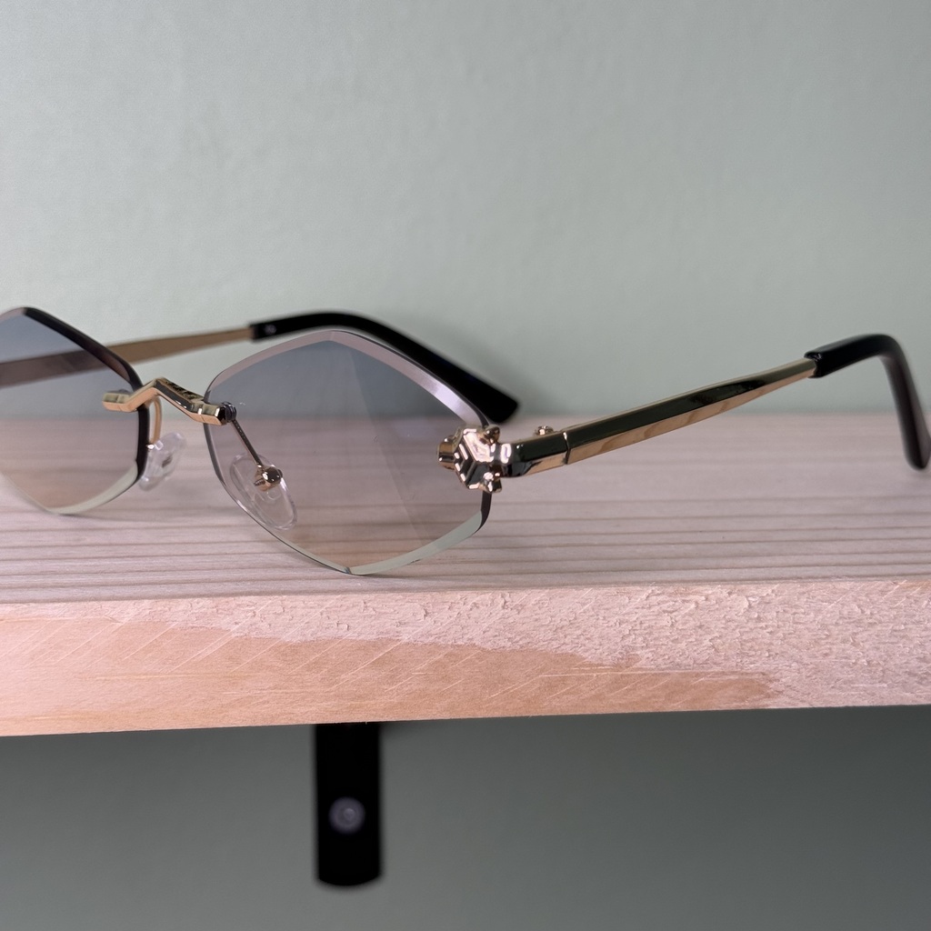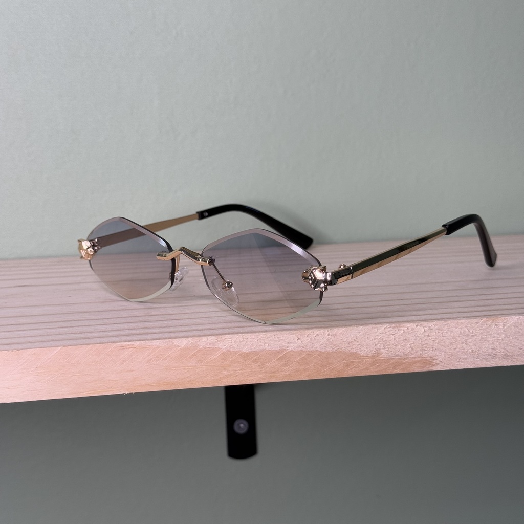 É um modelo balgriffe, sem armação a volta da peça, com lentes em formato ''borda infinita'' que traz leveza no peso e proporciona um design clean e estiloso.