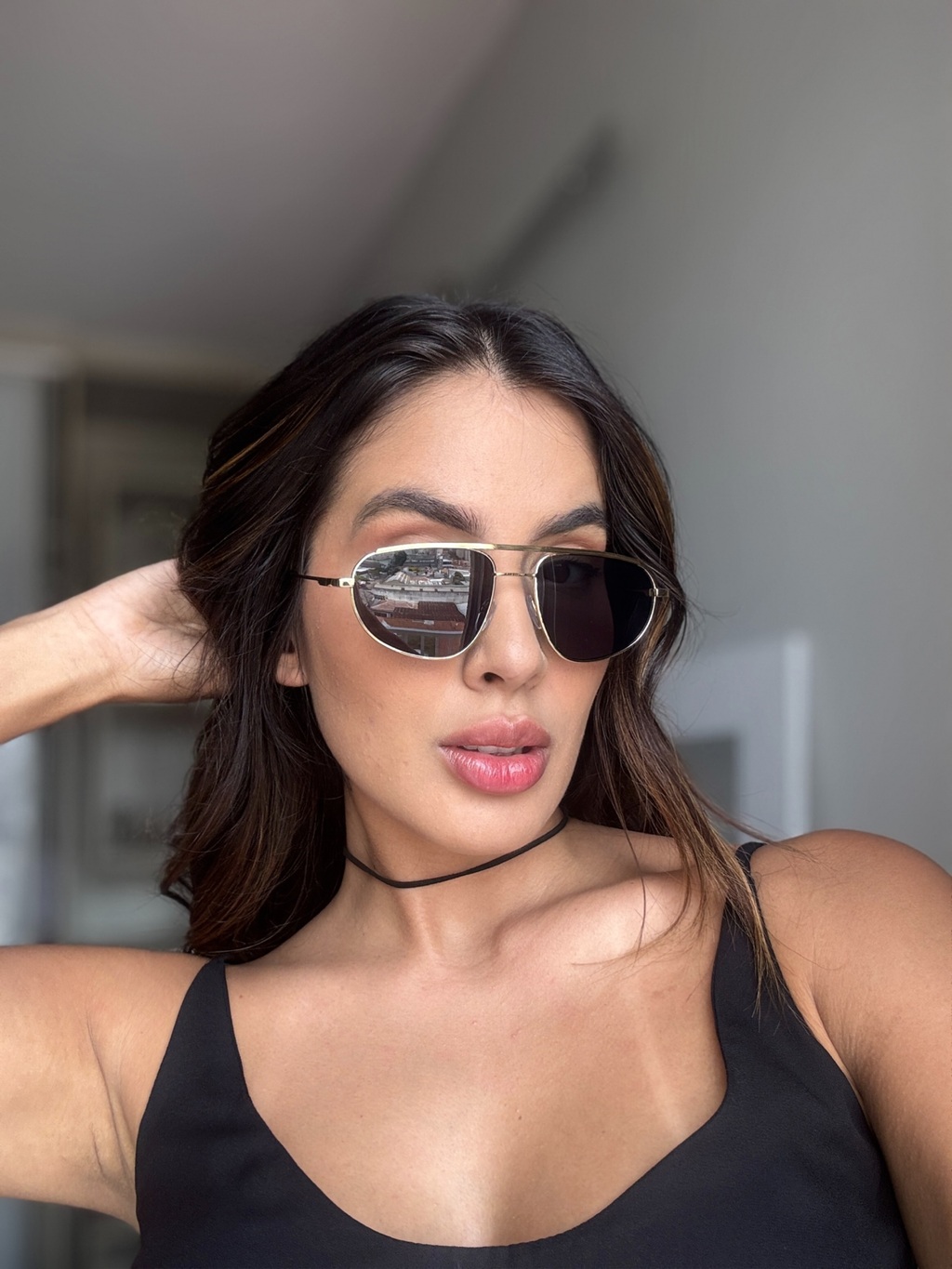 Este é o modelo perfeitooo para um rosto menor e mais fino, possui uma horizontal mais curta, uma proposta de "mini óculos" e lentes cosméticas que são a finalização perfeita para um óculos fashionista.